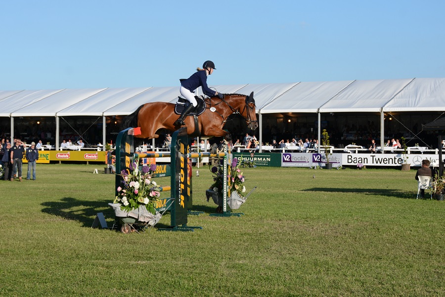 De Noorse Iselin Gjendemso wist met haar paard Woulon L nog wel een foute omloop te rijden, maar kwam met haar tijd van 45.01s niet in de buurt van Andrea Hoppe. Dat maakte Andrea Hoppe vandaag dus overtuigend winnares van deze ‘kleine’ Grote Prijs van Twente.