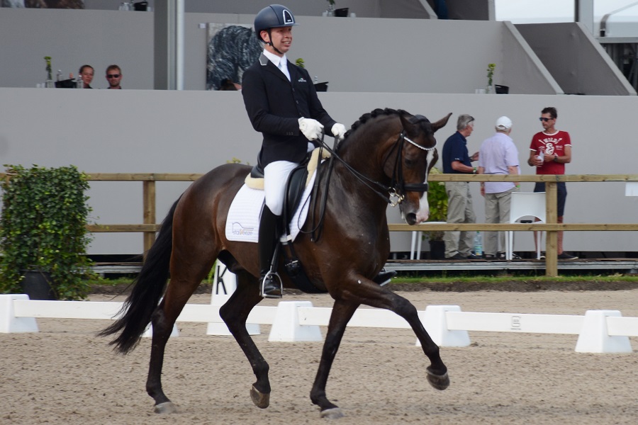 Bart Veeze had een ontspannen ogende Delgado onder het zadel en dat loonde in de ring. De combinatie liet een prima kür zien en dat leverde de combinatie dat ook de overwinning op met een overtuigend percentage van 75.000%.