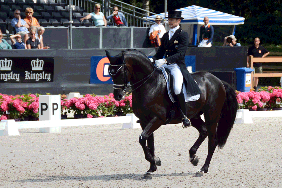 Voor Hans Peter Minderhoud en Glock’s Romanov (v. Rohdiamant) verliep de kür helaas niet zonder slag of stoot. Er zat te veel spanning in de proef waardoor een top drie klassering er niet meer in zat . De combinatie werd uiteindelijk met een score van 74.35% zesde in het eindklassement.
