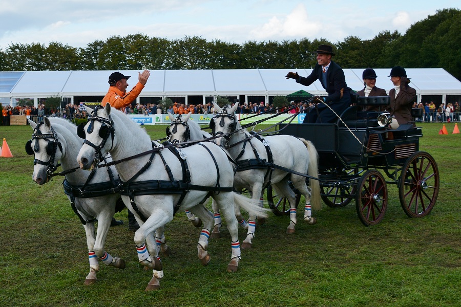Aanstaande zondag gaan IJsbrand en Bram Chardon een spectaculaire strijd met elkaar aan tijdens het afsluitende onderdeel van Paard&Koets op het Nationaal Hippisch Centrum in Ermelo. De twee mensportgrootheden verschijnen om 17.30 uur beiden met hun eigen span in de hoofdpiste, waar ze het gelegenheidsparcours van Jeroen Houterman in een zo’n snel mogelijke tijd af zullen leggen. Nadat IJsbrand het parcours heeft afgelegd met zijn vierspan Lippizaners en Bram met zijn vierspan pony’s, wisselen de heren van span om opnieuw de strijd met elkaar aan te gaan. Gezien het fanatisme van beide heren is spektakel verzekerd, dit afsluitende onderdeel belooft dan ook het klapstuk van Paard&Koets te worden.