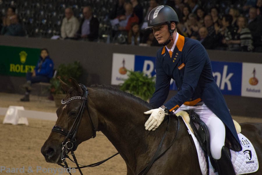 Als laatste combinatie mocht de uit Lunteren afkomstige dressuurruiter Diederik van Silfhout met de tienjarige ruin Bonzanjo (v.Jazz) laten zien. De combinatie liet een gedegen proef zien, waarbij Bonzanjo rustig en stil beeld in de aanleuning toonde. Met een score van 71.700% mocht deze combinatie de derde plaats in het klassement innemen en werd daarmee de beste Nederlandse combinatie van deze wedstrijd.