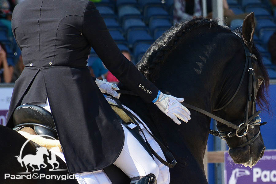 Het was Anne Meulendijks die met elfjarige MDH Avanti (v. United) het hoofd koel hield in de piste en met een sterk gereden proef de hoogste score tot dan toe wist neer te zetten en daarmee de individuele leiding in het tussenklassement overnam van Kooyman. Haar score bracht het resultaat van het landenteam naar 216.237 procent wat een voorlopige tweede plaats achter koploper Duitsland opleverde.