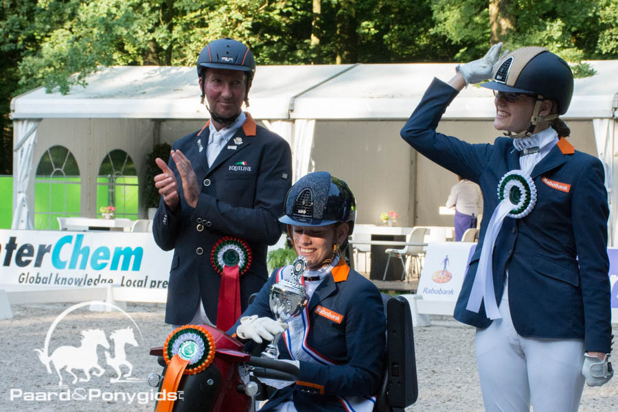 Met Frank Hosmar nog steeds ruimschoots aan de leiding mocht Rixt van der Horst ten slotte als laatste met Caraat haar proef laten zien en de opdracht was een hogere score neer zetten dan de 78.500 procent van Frank Hosmar. De combinatie kwam alert maar ontspannen ogend de ring in en dansten zich vloeiend door de proef heen. Ook de jury was duidelijk onder de indruk van het optreden en beloonden de kür met 79.500 procent, wat de combinatie de overwinning van de Para Dressuur Finale opleverde. Met een procent verschil mocht Frank Hosmar de tweede plaats innemen en op de derde plaats Estéé Gerritsen.