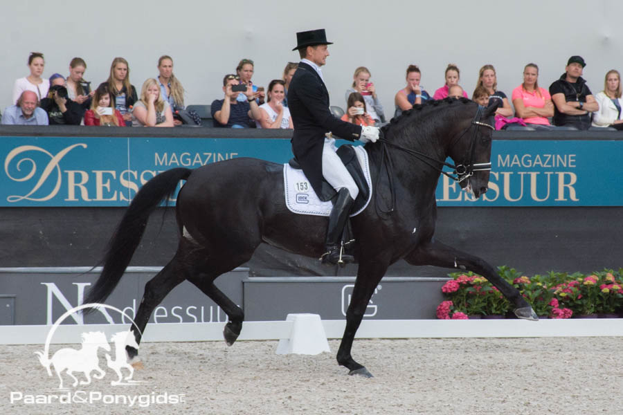 Het werd een avond vol hippische hoogstandjes met als hoogtepunt het optreden van Edward Gal en Glock’s Zonik. Edward Gal stuurde zijn 8-jarige Zonik (v. Blue Horse Zack) overtuigend door de ring op de maat van de muziek en liet daarmee de bewegingen van zijn paard tot hun recht komen. Het publiek genoot mee terwijl de combinatie door de piste danste en een foutje in de wissels om de twee werd vergeven. De voorspelling direct na afloop was dan ook een hoge score. Met 81.708 procent werd die voorspelling bevestigd en opgeteld met de 79.430 procent van gisteren was het goud eigenlijk al binnen.
