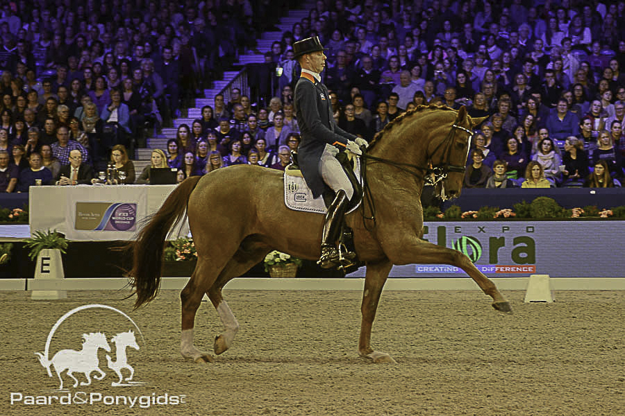 Als laatste verscheen Edward Gal in de ring met Glock’s Voice (v.De Niro). Deze combinatie zette een mooie kür neer en behaalde daarmee de derde score neer van vanavond met een percentage van 80.467 procent. Hiermee was het podium gelijk aan dat van gisteren met op de eerste plaats Carl Hester, gevolgd door Hans Peter Minderhoud op twee en Edward Gal op plaats drie.