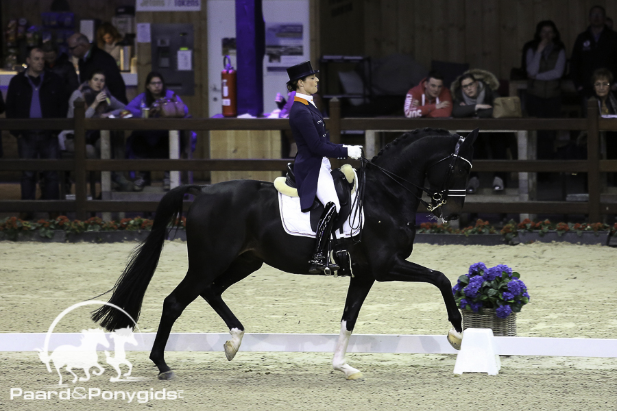 Adelinde Cornelissen stuurde haar 12-jarige hengst Aquiedo (v. Undigo) echter zelfverzekerd door de ring en trakteerde het publiek op een fijne proef. De jury beloonde het optreden met mooie cijfers en op het protocol pronkten er onder andere achten voor passage en piaffe. De eindbeoordeling van de jury kwam uit op 75.039 procent en was goed voor de overwinning vandaag.