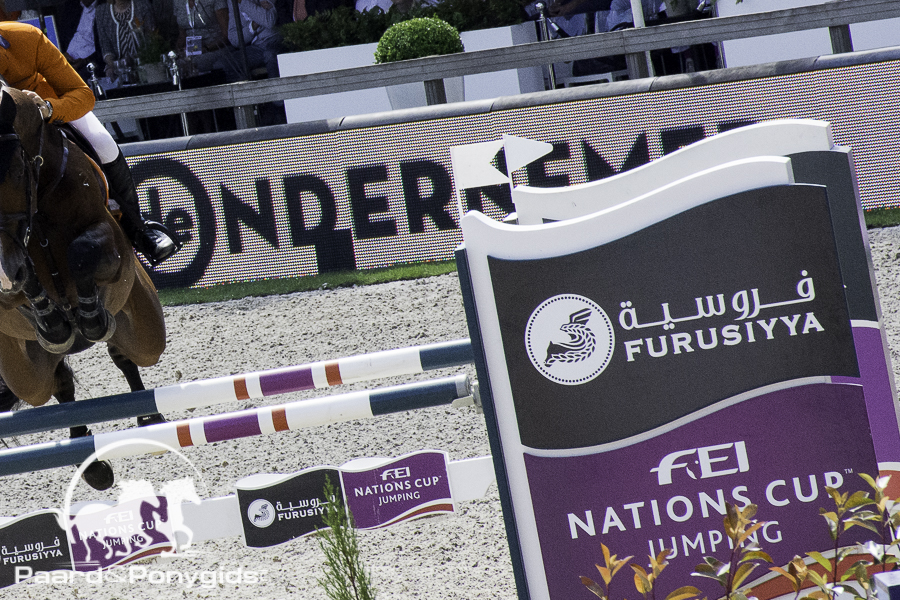 Door een geweldige tweede manche – slechts 1 strafpunt – klom team Oranje van de gedeelde zesde naar de gedeelde eerste plaats met het team van de Verenigde Staten. In de barrage kreeg Con Quidam RB een fout in de dubbel en eindigde in een tijd van 38.03 seconden. Laura Kraut kreeg eerder in het barrageparcours ook een springfout en reed sneller over de finish waardoor team USA won.