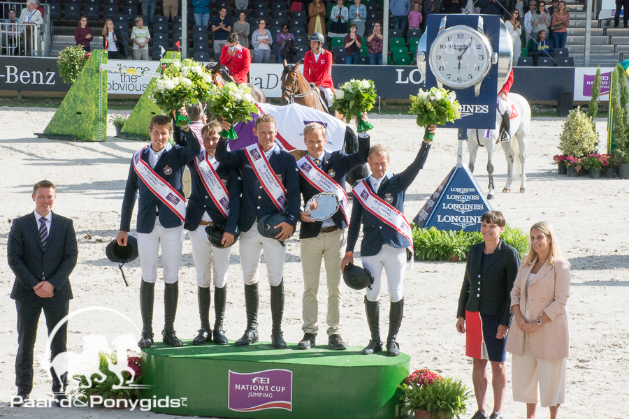 Het tussenklassement veranderde haast na elke gereden rit en de spanning liep op naarmate elk land zijn volgende ruiter in de ring had gebracht. Voor Nederland wist Harrie Smolders tweemaal op sublieme wijze zijn 13-jarige Diamant de Semilly zoon Don VHP Z door de ring te sturen. Ook Gerco Schröder liet met Glock’s Cognac een fantastische eerste omloop zien. Helaas moest deze combinatie in de tweede omloop twee balken incasseren, waardoor de druk in het team toe nam om te presteren. Jur Vrieling pakte met een goed springende VDL Glasgow van het Merelsnest (v. Nabab de Reve) een balk in de eerste omloop. In de tweede omloop ging het koppel voortvarend van start, maar ook in die tweede omloop moest er een balk geïncasseerd worden. Hekkensluiter voor Oranje was Marc Houtzager met Sterrehof’s Calimero (v. Quidam de Revel). Ook deze combinatie had in de eerste omloop een balk, maar de tweede omloop verliep voortvarend tot er in het verloop van het parcours twee balken in zand ploften. Met in totaal zestien strafpunten waren de podiumkansen voor Oranje verkeken. Met een vijfde plaats eindigde Nederland in de middenmoot.