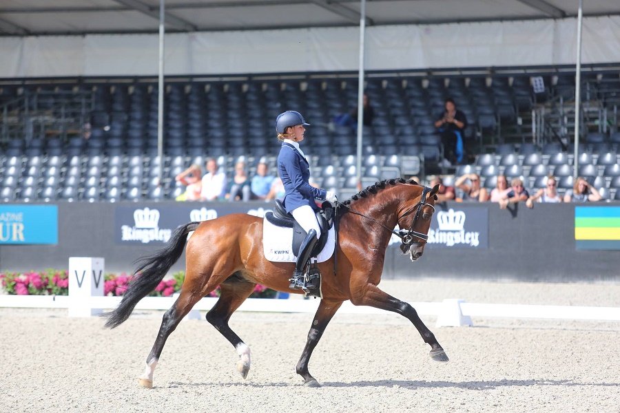 Kirsten Brouwer reed bij de zevenjarigen haar Ferdeaux naar de hoogste score. Ook Mara de Vries met Farzana G en Adelinde Cornelissen met Fleau de Baian zagen hun paarden geselecteerd worden. Naast bovenstaand drietal maken ook Presidents First Apple van Patrick van der Meer, Fantastique van Lynne Maas en For Gribaldi gereden door Dinja van Liere deel uit van de WK selectie.