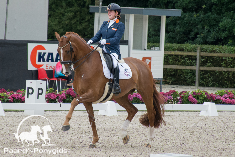 “Demantur vond het best een spannende baan,” vertelt Sanne. “Maar eenmaal begonnen ging hij eigenlijk steeds meer focussen en bleef hij beter bij mij. Ik kon hem mooi in de aanleuning houden, het is ook een paard met een waanzinnig front en een hele mooie voorbeentechniek. Ik ben supertrots op Demantur dat hij zoveel vertrouwen in mij heeft en voor me door het vuur gaat. Dat is voor vandaag mijn allergrootste winst.”