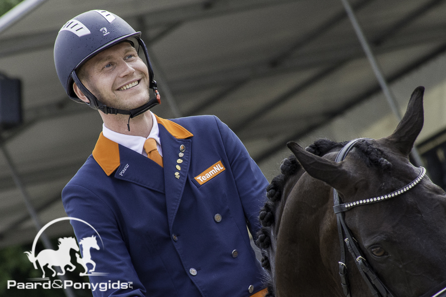 ”Ik vind dat met name Diederik, die we toch als vrij jonge combinatie naar dit EK gestuurd hebben, heel goed gepresteerd heeft en dan deze punten rijden dat is gewoon goed. Madeleine heeft helemaal gedaan wat we van haar verwachten en een score neergezet waarvan we wisten dat het kon. In de Grand Prix viel het iets tegen, maar nu knalde ze er op met 74%, dat is heel goed. Ook Patrick van der Meer heeft goed gereden, twee kleine dingetjes er in, maar dat gebeurt op dit hoge niveau. Ik denk dat we moeten vaststellen dat dit niet het concours van Edward Gal met Voice was. De vorm is er net niet, dat is jammer”, reageerde bondscoach Rien van der Schaft na afloop tegenover KNHS.