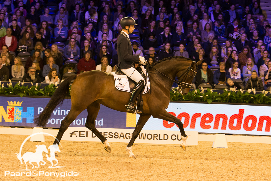De dressuuravond op de eerste dag van Jumping Amsterdam trok veel bezoekers naar de RAI en die namen ook bijna allemaal plaats op de tribunes. Die volle tribunes vormden vervolgens het uitzicht voor de vierjarige paarden die als eerste van start mochten in de Subli Competitie voor vier-en vijfjarige paarden.