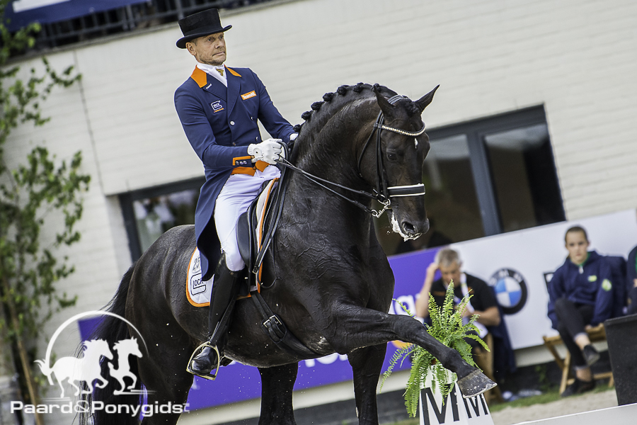 Maarten van der Heijden, directeur topsport van de KNHS en bij dit WK ook de Chef d’Equipe, kijkt tevreden terug op de prestaties van de Nederlandse dressuurruiters. “Edward Gal heeft echt top gereden. Jammer van het foutje in de ene pirouette, maar hij had hele mooie draf verruimingen en appuyementen, een fantastische passage en overgangen er uit, de hals was mooi op lengte, hij heeft het echt top gedaan. Knap gereden! Ik vond dat ook Hans Peter het heel goed deed, dit paard maakte zijn debuut op een internationaal kampioenschap en liep hier pas zijn zesde Grand Prix. Ook Emmelie Scholten maakt haar debuut op een internationaal kampioenschap en deed dat knap. Die combinaties maken nog fouten, maar ze kunnen ook echt nog enorm groeien. Madeleine Witte heeft meer ervaring, maar reed hier wel haar beste proef van het seizoen. Als je kijkt naar onze teamscore nu in vergelijk met het EK vorig jaar, dan is die echt veel hoger, maar ook de concurrentie is enorm verbeterd. We staan nu op een vijfde plek, maar we hebben ook een aantal paarden die nog door kunnen groeien de komende jaren. De tweede en derde combinatie zullen echt hoger moeten scoren dan ze nu doen, en dan komt dat podium echt wel weer in zicht.
