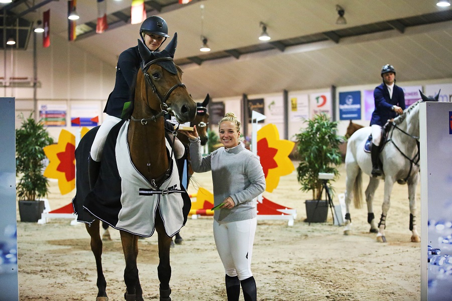 Ciao Bella S heeft met haar elf jaar al wat kilometers op de teller en die ervaring kwam goed van pas in de hoofdrubriek van het driedaagse Jumping Lichtenvoorde, gebouwd door Sjack Meuleman. “Het parcours stond niet abnormaal hoog, maar er zaten moeilijke lijntjes in. Zeker richting het eind werd het lastig. Ik had ook totaal niet verwacht dat ik zou winnen. Het is ons eerste indoorconcours weer. Ook al loopt m’n merrie al een paar jaar in de sport, het is toch even omschakelen. Ze was op het voorterrein haast te voorzichtig en te hectisch. Het is ook wel een aparte merrie. Heel heet, veel karakter, je moet heel zachtjes met haar omgaan”, vertelt Josta van Straaten.