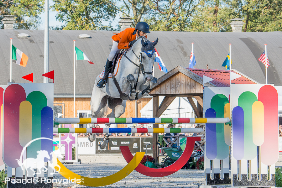 Julia Krajewski heeft de strijd in Boekelo gewonnen. De Duitse amazone stond tot aan het springen tweede achter Tim Lips en wist in het springparcours het hoofd koel te houden en een prachtige foutloze rit neer te zetten binnen de tijd. Tim Lips lag toen nog op koers voor goud met Bayro, maar op de driesprong ging het toch nog mis, waardoor de combinatie terugzakte naar de derde plaats.