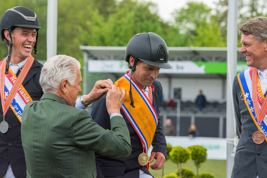 “Ik ben heel dankbaar en blij dat CH Mierlo hier weer een heel mooi kampioenschap heeft georganiseerd, dat is een enorm compliment waard. Er stonden hier parcoursen op hoog sterren niveau, als je hier in de top mee rijdt, heb je het goed gedaan. Dat geldt op alle fronten ook bij de Children, Junioren en Young Riders, wie hier vooraan mee draait, heeft iets laten zien. Er missen een paar ruiters, maar we hebben ook een groot aantal topnamen aan het werk gezien. Drie daarvan stonden op het podium, maar ook mannen als Jur Vrieling, Bart Bles en Willem Greve zijn er en de sport was top. Wat hier gepresteerd is, staat op papier. Wie hier niet is, mist een kans. Ik ga nu voor mezelf alles rustig op een rijtje zetten en kijken wie er naar welke wedstrijd gaat. Ik heb hier heel veel input gekregen waar ik mee aan de slag kan.”