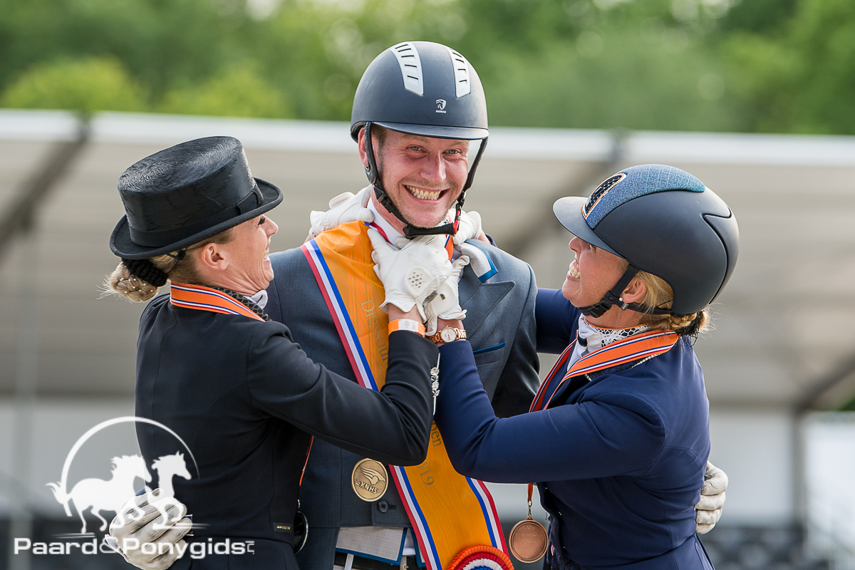Het werd nog even spannend voor de nummers één en twee, want het verschil tussen Dinja van Liere en Diederik van Silfhout lag wel erg dicht bij elkaar. Dinja van Liere reed evenals gisteren een fantastische proef met Geniaal, maar Diederik van Silfhout imponeerde met Fine Surprice en scoorde bijna 80 procent voor zijn kür. Om de spanning er nog even goed in te houden werd de score ook nog bijgesteld, maar uiteindelijk mocht Diederik zijn plaats innemen op het hoogste podium en werd het zilver uitgereikt aan Dinja van Liere.Maar of beide amazones blij waren met de uiteindelijke uitslag laat zich raden…