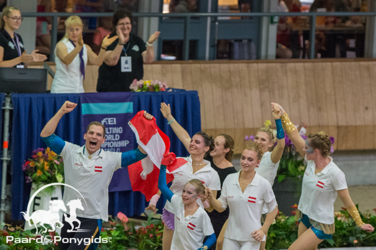Naast de solo titels ging de titel bij de teams ook naar Duitsland. Het team wist met het paard Smarti 11 met aan de longe Pauline Riedl de overwinning veilig te stellen.