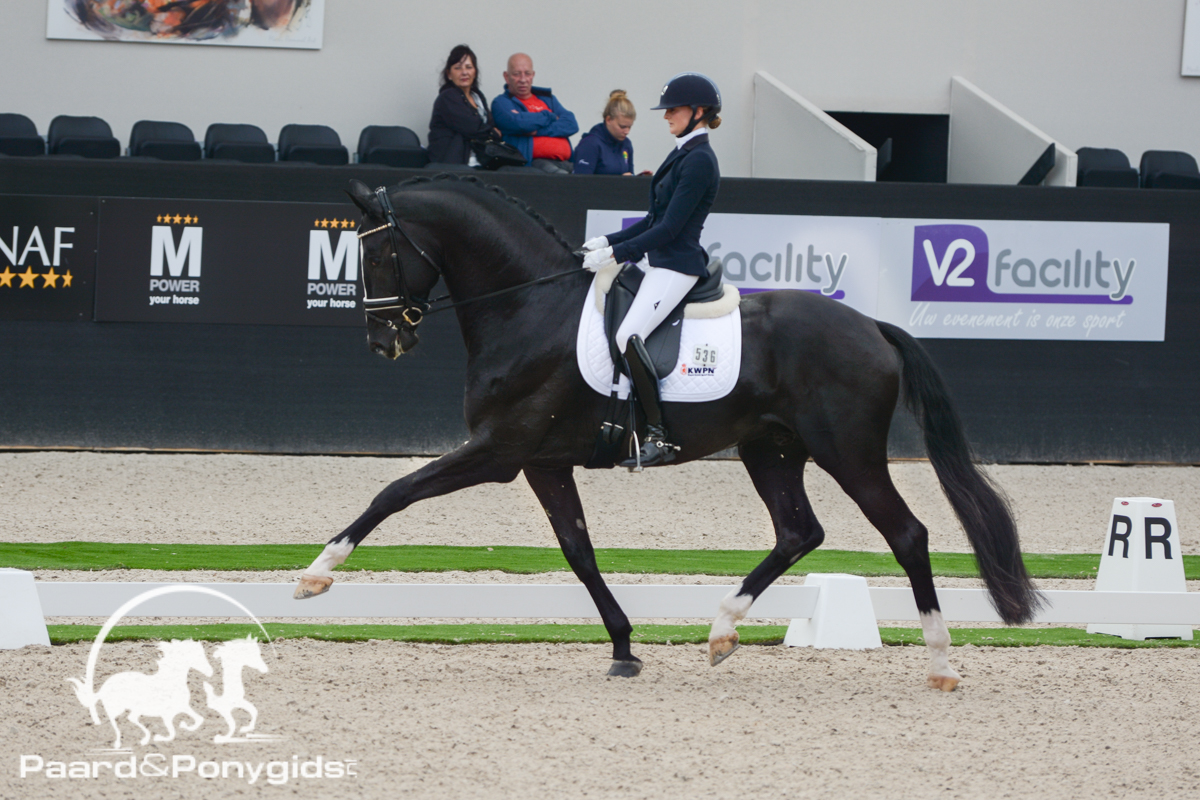 De zichtbare spanning bij Johny Depp zat de Bordeaux hengst niet in de weg bij de jurybeoordeling. Met een gemiddelde van 9.28 punten haalde de KWPN hengst met gemak zijn finaleticket binnen. Hij eindigde onder het zadel van Renate van Uytert- van Vliet op een derde plaats in het klassement van vandaag. Ook Johny Be Good mag zich zaterdag in de finale nog een keer laten zien in de dressuurring. De KWPN ruin, gereden door Emmelie Scholtens, heeft Dream Boy N.O.P. als vader en een vleug Fries bloed van moeders kant van Tietse D.