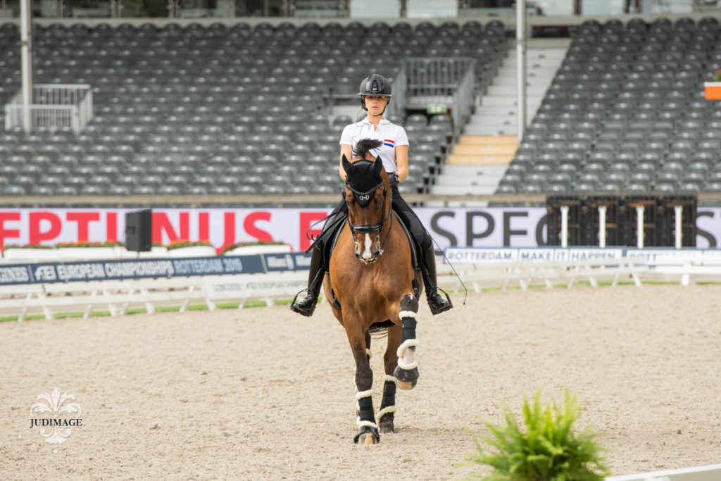 Na de veterinaire keuring mochten de deelnemende combinaties met hun paarden trainen in de hoofdpiste in aanloop naar de Grand Prix van morgen. Fotograaf Judith Kuivenhoven maakte voor Paard & Ponygids een sfeervol beeldverslag van de training van de diverse Europese teams in Rotterdam.