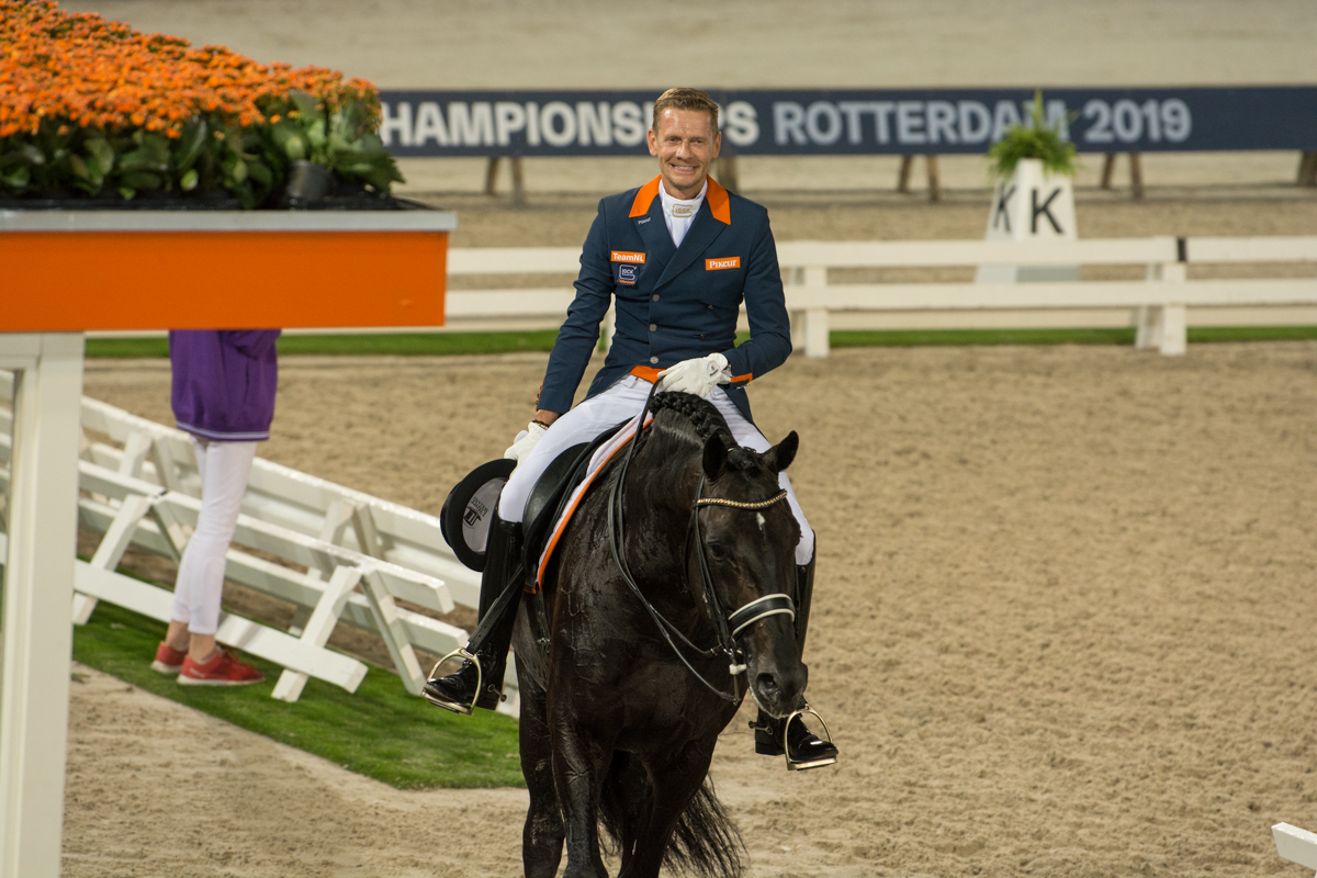 Edward Gal kwam als voorlaatste in de wedstrijdpiste vanavond en reed een prima proef met Glock’s Zonik en de Blue Hors Zack zoon lijkt zich ook telkens weer te verbeteren.Met een score van krap 78 procent is een plek in de finale van zaterdag in ieder geval verdiend.