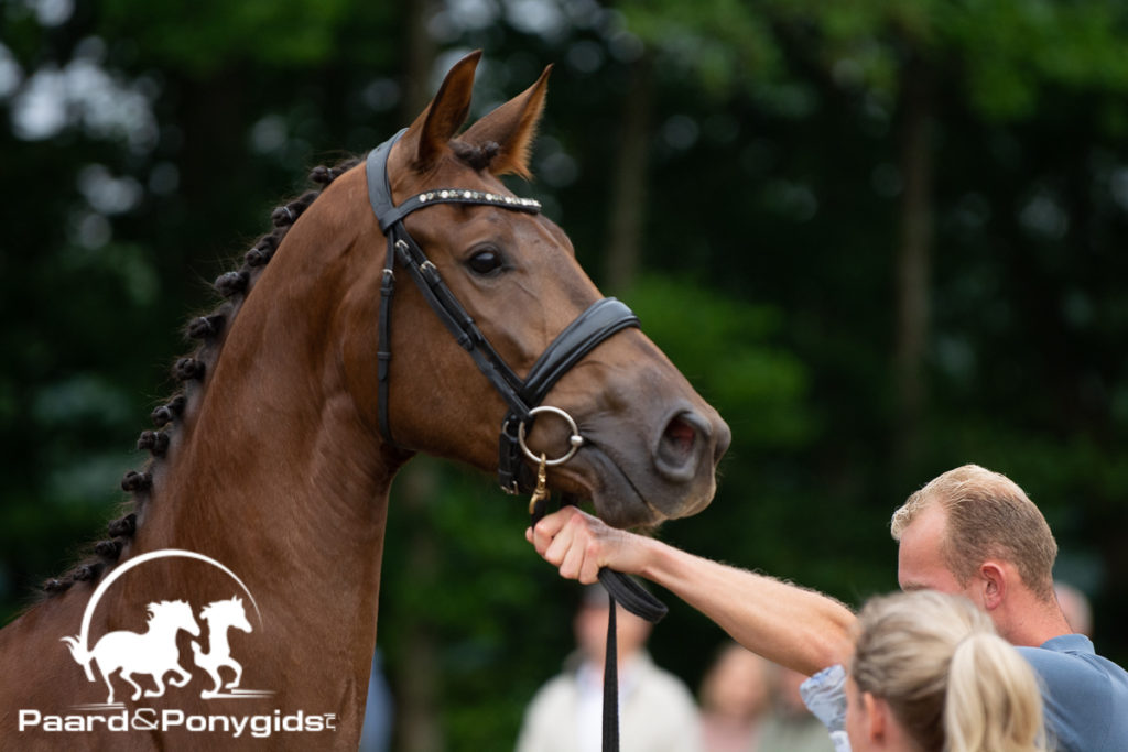 Het team vol enthousiaste voorbrengers brachten de merries stuk voor stuk de ring in. De ene merrie wat onwennig en de andere wat gespannen en dan wordt goed duidelijk hoe goed dit team op elkaar is ingespeeld. Marcel geeft met korte aanwijzingen aan wat de merrie nodig heeft; “Houd deze maar wat kort bij” of “niet te veel aanmoedigen”. De liefde voor de merries klinkt door in de korte opmerkingen die Tamara ondertussen maakt. “Dit is zo’n blij paard”. “Zie je die aftekening? Zo grappig… als je haar van de andere kant ziet is het gewoon een heel ander paard!”. “Dit paard kan zo fijn lopen!”.
