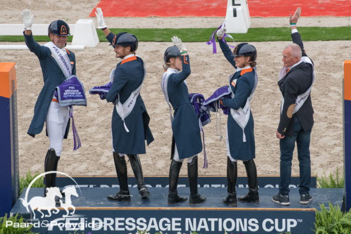 Met een teamtotaal van 15 verzamelde punten heeft het Nederlandse dressuurteam een klinkende overwinning behaald in de Nations Cup in Rotterdam.