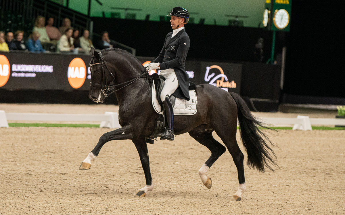 ’s-Hertogenbosch – Hans Peter Minderhoud heeft zijn succesvolle weekend op The Dutch Masters bekroond met winst in de CDI3* Kür op Muziek, de Equilibrium Prijs. Met zijn hengst Glock’s Toto Jr. reed hij een foutloze, expressieve proef die door de jury werd beloond met 78,935%. Na zijn zege in de Grand Prix bevestigt Minderhoud opnieuw zijn topvorm in de Brabanthallen.
