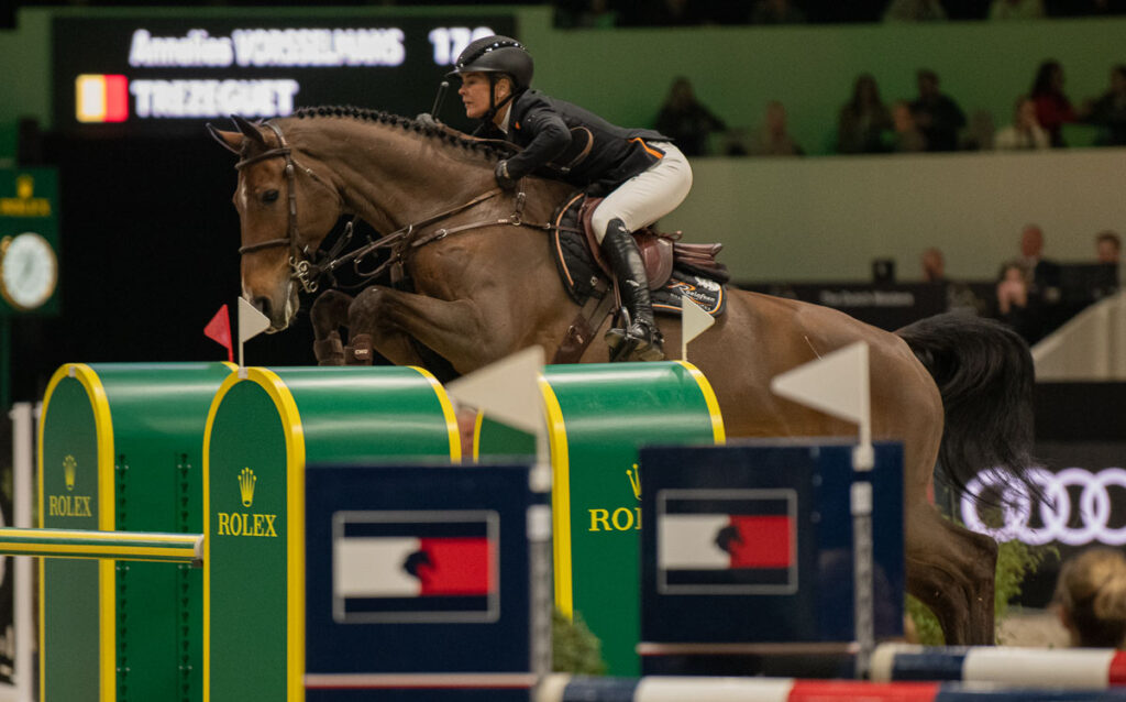 Waar de ene na de andere ruiter zich stukbeet op Thomas’ tijd, deed Annelies Vorsselmans een gedurfde poging om de Belgische overwinning alsnog bij te schrijven op haar naam. Haar foutloze ronde was strak, haar tempo hoog, maar de klok bleef net iets langer doorlopen. Met 65.51 seconden kwam ze enkele tienden tekort en moest ze genoegen nemen met de tweede plaats.